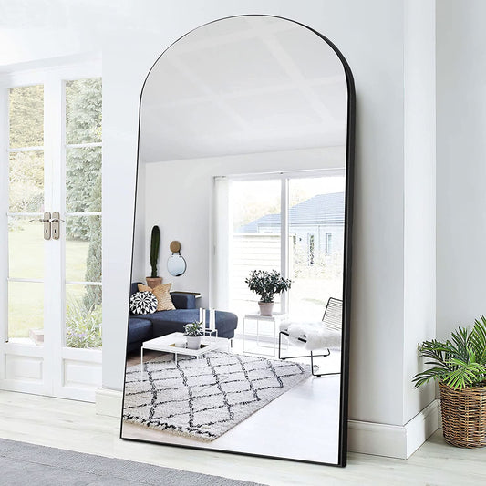 Black Wood Frame Full Length Arched Mirror