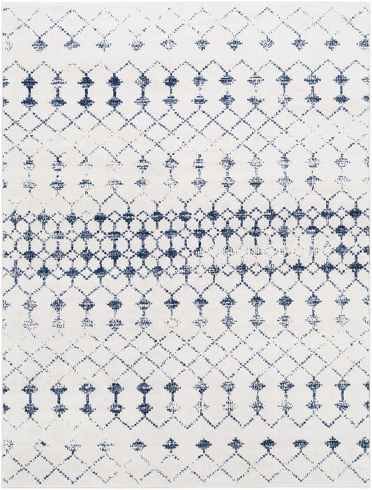 Sold outCowaramup 7x9 White/Blue Trellis Rug