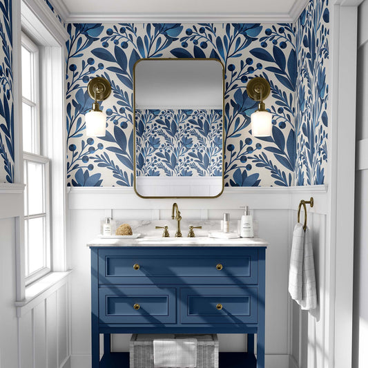 Blue Petals Wallpaper – Custom Peel and Stick or Traditional | Elegant Floral Wall Mural