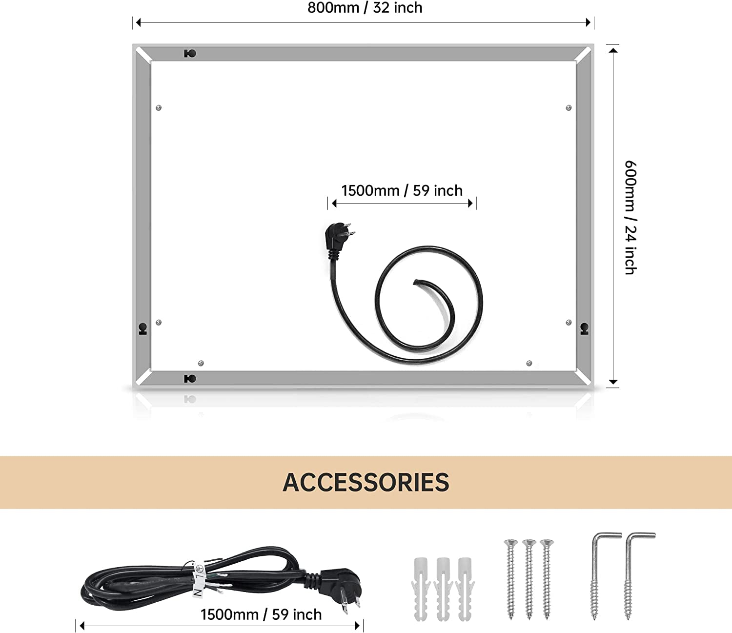 Made with 5mm copper-free high-quality mirror, the mirror features a 35mm aluminum frame and a PVC back panel, ensuring durability and resistance to corrosion. It also comes with ETL certification for safety. -