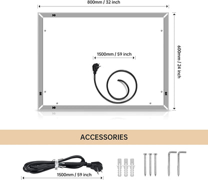 Transform your bathroom with this sleek, energy-efficient LED Wall Mounted Bathroom Mirror, offering adjustable lighting, an anti-fog feature, and a clear, bright reflection, all in one stylish package. Enjoy your grooming routine with ease and sophistication!